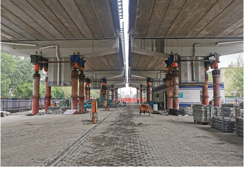4月28日16時,由城發(fā)投集團所屬市政建設(shè)總公司承建的二環(huán)路內(nèi)外互聯(lián)互通工程關(guān)鍵節(jié)點——南二環(huán)跨紅旗大街橋梁兩側(cè)落地段全部頂升到位。 為實現(xiàn)南二環(huán)石銅路至中華大街全線連續(xù)高架,對現(xiàn)狀南二環(huán)跨紅旗大街橋梁兩側(cè)落地段進行調(diào)坡頂升。頂升橋體全長322.6米,雙幅共28跨,采用500噸液壓千斤頂56臺,500噸機械跟隨頂56臺,總頂力11000噸,頂升高度0.2米—5.15米。 該橋采用“同步整體頂升、分級到位”的施工方案,利用PLC同步液壓控制系統(tǒng)及位移傳感器進行頂升控制,實施多點同步頂升和單點獨立控制,同時配備頂升跟隨系統(tǒng),確保施工安全。該技術(shù)具有國內(nèi)領(lǐng)先水平,有效解決了頂升高度高、前后縱坡變化大、各跨高度不一、作業(yè)空間有限、施工工期短等難點問題,相較于傳統(tǒng)拆除重建的做法,橋梁頂升工藝節(jié)省約65%的建造成本,項目施工周期縮短60%,有效降低對周邊環(huán)境和交通的影響。 下一階段,市政建設(shè)總公司將進一步精心組織,科學安排,抓緊進行墩柱接長及橋面系后續(xù)工作,優(yōu)質(zhì)高效推進二環(huán)路內(nèi)外互聯(lián)互通工程建設(shè),為完善省會路網(wǎng)結(jié)構(gòu),提高道路通行能力,拓展城市空間,促進經(jīng)濟和社會發(fā)展作出自身貢獻。